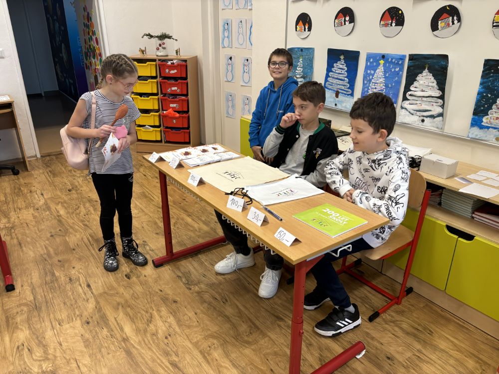 Ten, kdo naše vánoční tvoření navštívil, určitě nelitoval. Děti si zkusily zdobení perníčků, které nám napekla paní Redková, výrobu svíčky pod vedením paní Prýglové. Pozvání přijala i paní Fialová, která má vždy luxusní cupcakes. Ty si děti přizdobovaly dle fantazie marcipánem. Naši „páťáci“ nabízeli svůj časopis, který se jim moc povedl.