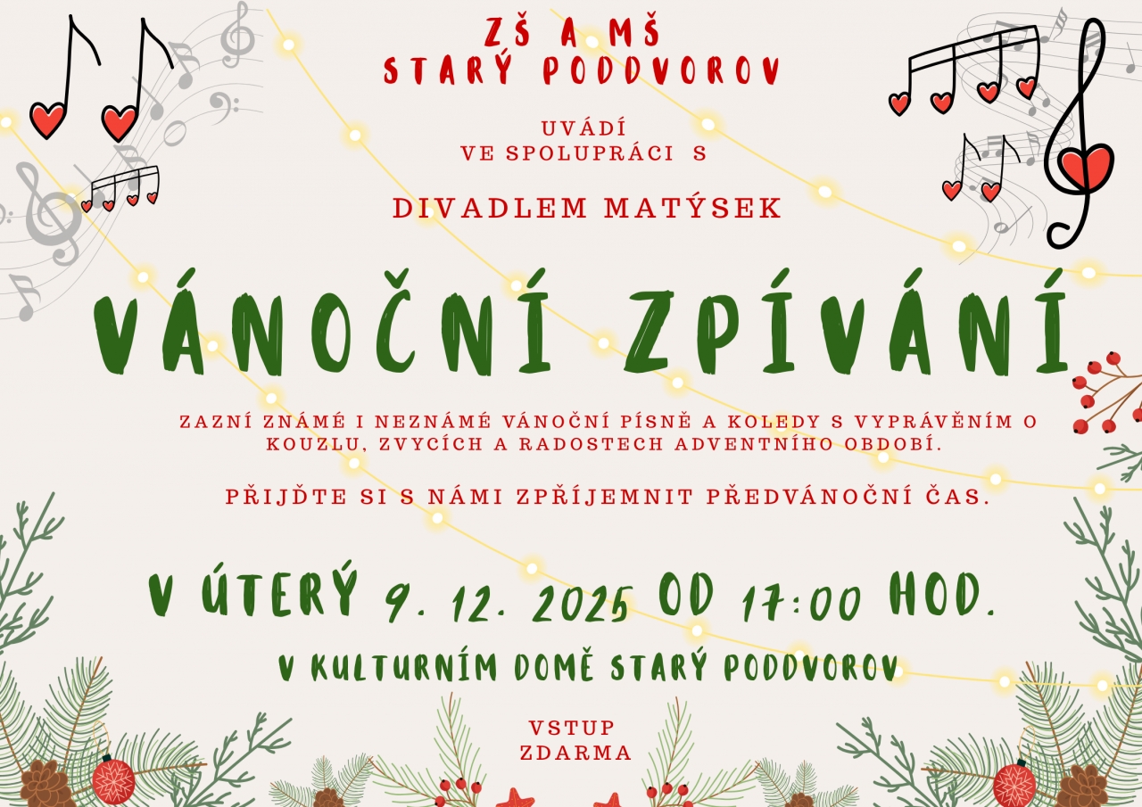 V úterý 9. prosince k nám zavítá divadlo Matýsek se svým “Vánočním zpíváním”.