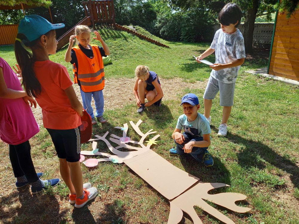 Děti se seznámily hravou formou s novým pojmem ekosystém zahrada a procvičily si své znalosti z oblasti prvouky. Vyhledávaly, pojmenovávaly a přiřazovaly rostliny a dřeviny rostoucí na zahradě. Bádaly nad stářím stromu pomoci letokruhů.