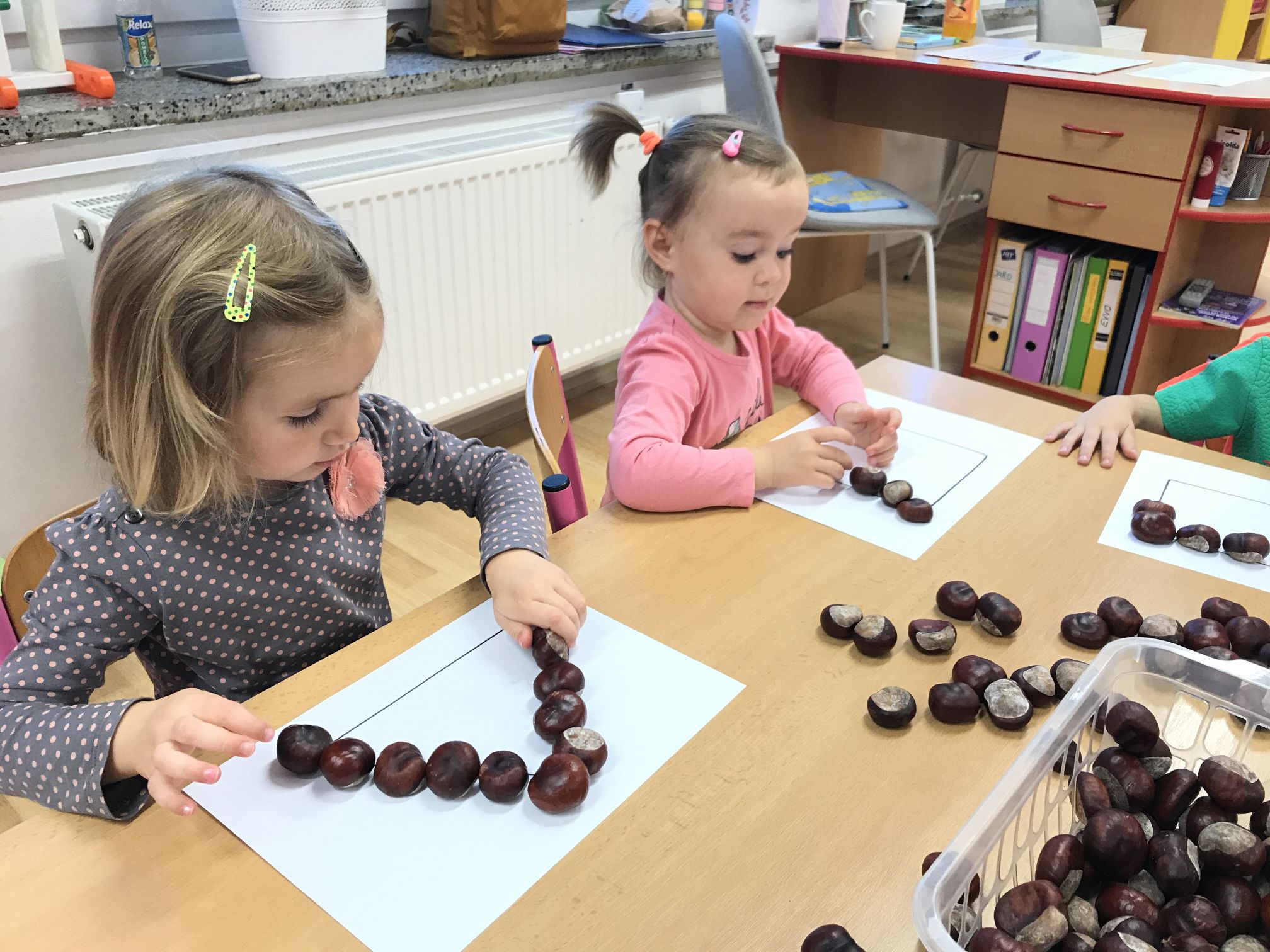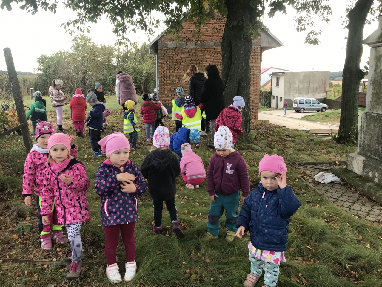 V měsíci říjnu máme různá témata spojená s barvami a dary podzimu. S dětmi jsme využili slunečného počasí a vydali se na krásnou procházku ke sklepům, kterou jsme spojili se sběrem kaštanů.